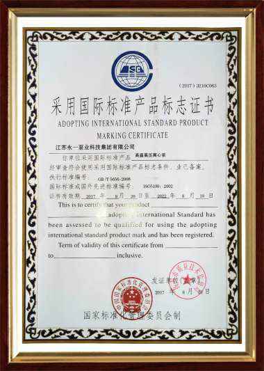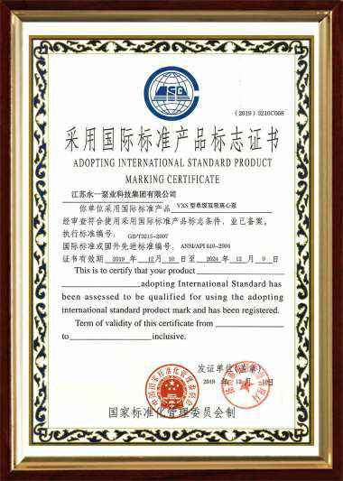YXS采用国际标准产品标志证书